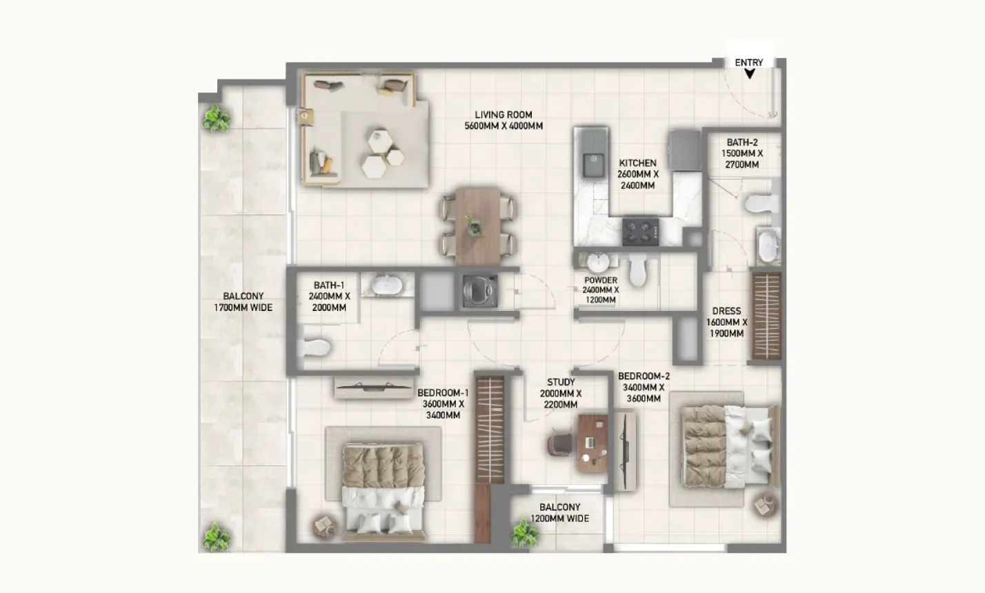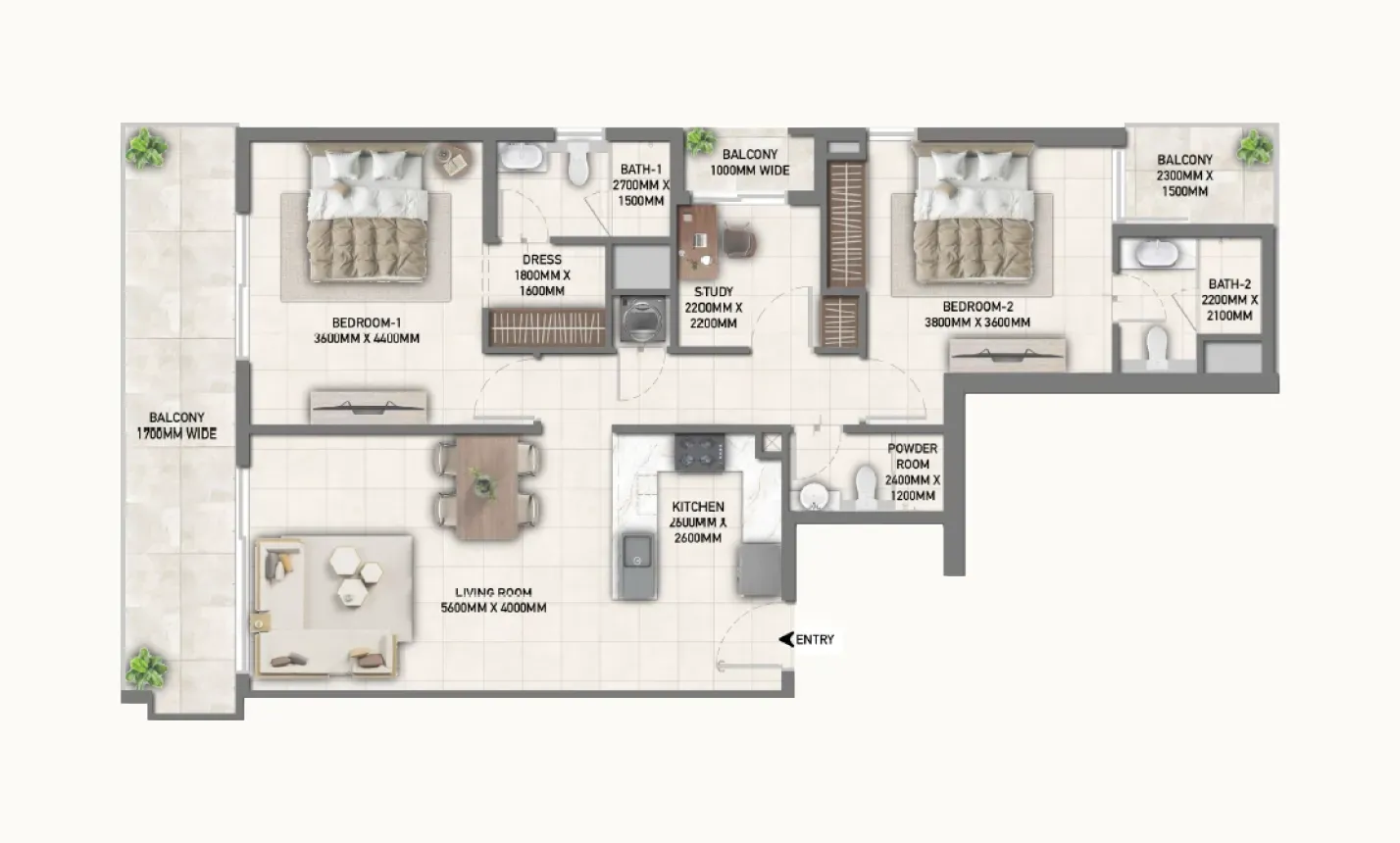 The project offers well-considered 1.5 bedroom and 2.5 bedroom apartments designed around how people live, work, and unwind. Layouts prioritise usable space, natural light, and a sense of ease, making the homes suitable for families, working professionals, and those choosing Majan as a long-term address.
